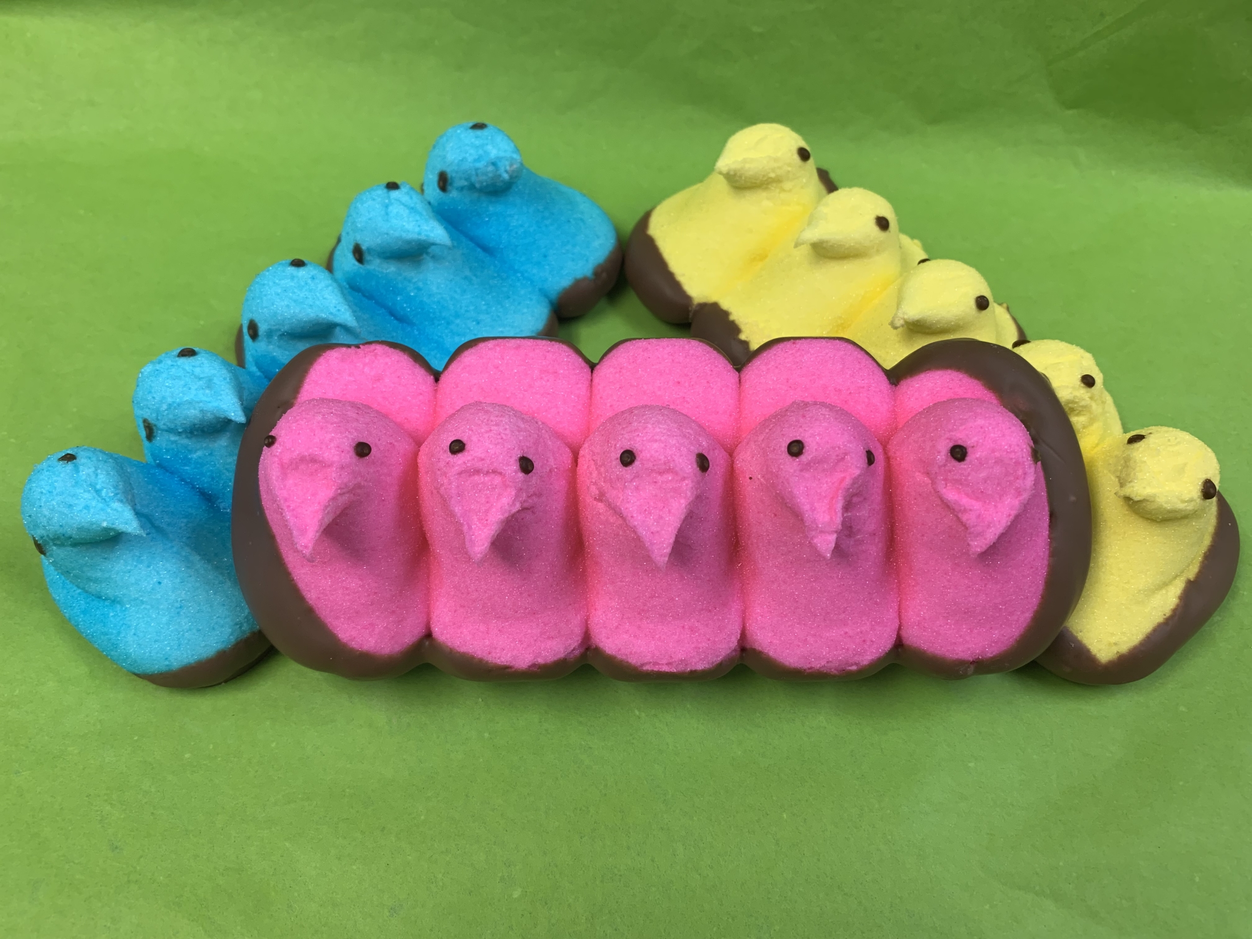 One 5 pack of 1/2 dipped marshmallow chicks, in your choice of chocolate.